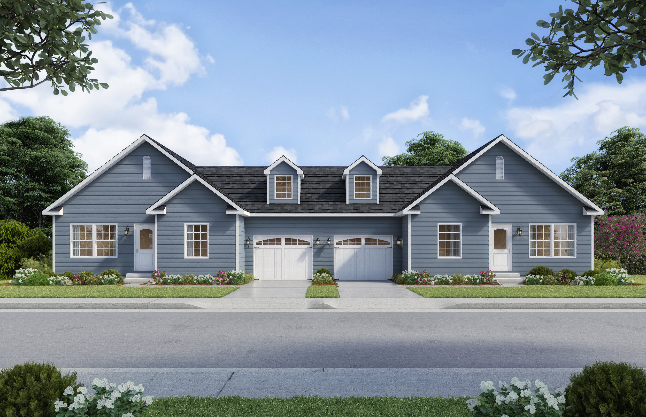 Juniper is a ranch duplex with endless options for configuration within a given site or subdivision. With two bedrooms and two full baths in each unit, Juniper’s layout ensures comfort and convenience for a variety of uses.